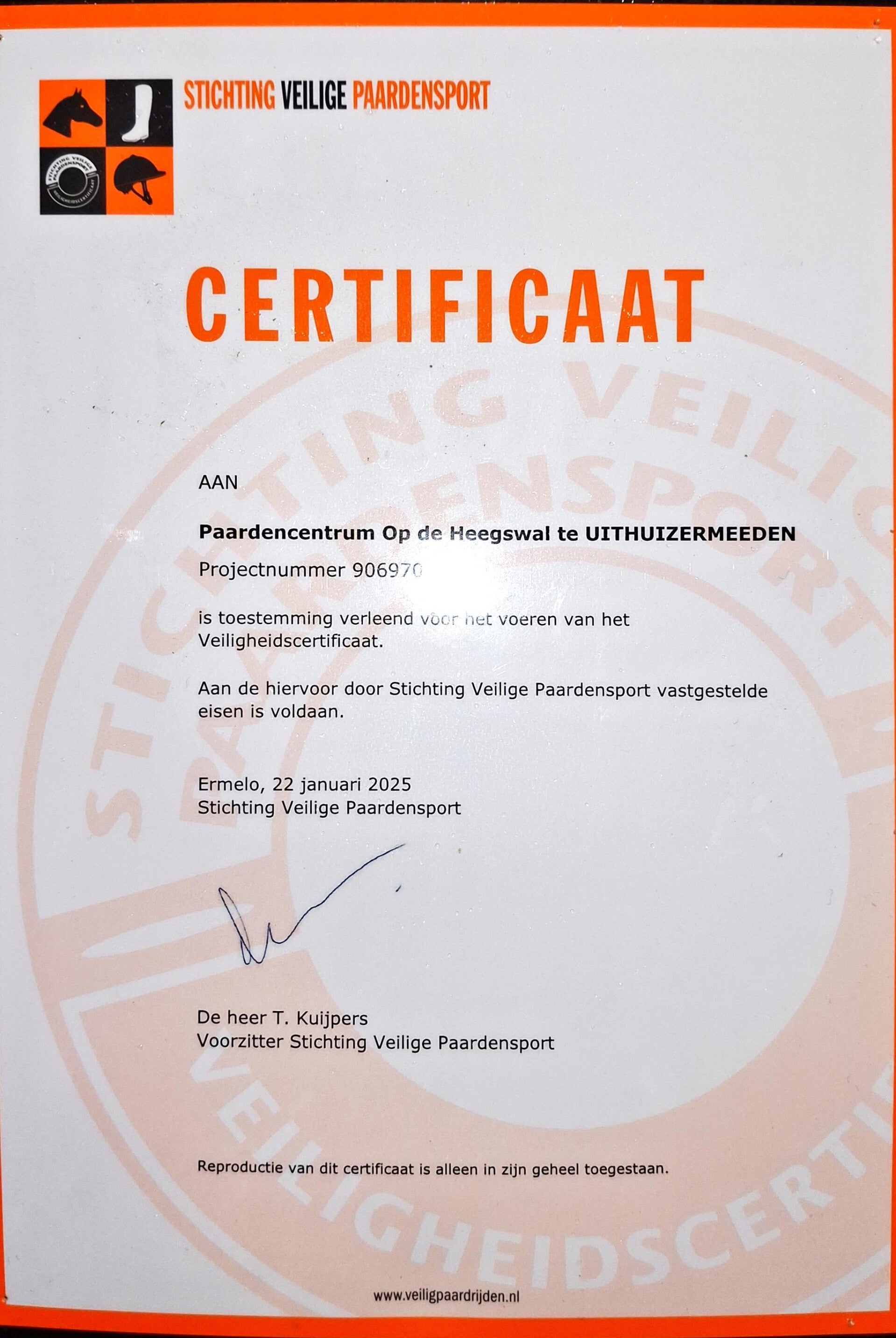 Ons bedrijf is aangesloten bij de Stichting Veilig Paardensport. www.veiligpaardrijden.nl
